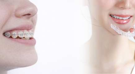ありあけ歯科クリニックでは、従来の金属製ではなく、審美性に配慮した透明なブラケットをし、目立ちにくい矯正治療を行っています。